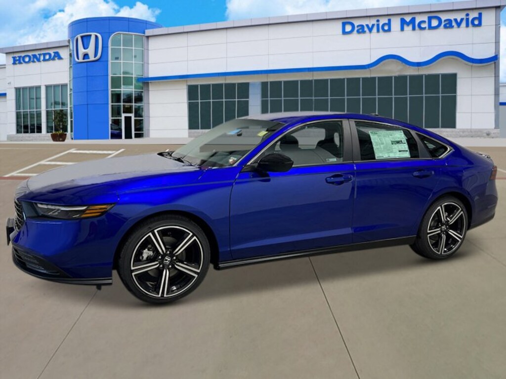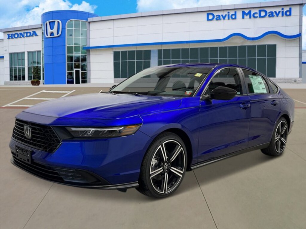 Recent Arrival! This 2025 Honda Accord Hybrid Sport IN-TRANSIT in Still Night Pearl comes with the following features: 4-Wheel Disc Brakes, 8 Speakers, ABS brakes, Adaptive Cruise Control: Adaptive Cruise Control (ACC) with Low-Speed Follow, Air Conditioning, Alloy wheels, AM/FM radio, Apple CarPlay/Android Auto, Auto High-beam Headlights, Automatic temperature control, Blind Spot Information (BSI) System warning, Brake assist, Bumpers: body-color, Compass, Delay-off headlights, Driver door bin, Driver vanity mirror, Dual front impact airbags, Dual front side impact airbags, Electronic Stability Control, Emergency communication system: HondaLink, Exterior Parking Camera Rear, Fabric Seat Trim, Four wheel independent suspension, Front anti-roll bar, Front Bucket Seats, Front Center Armrest, Front dual zone A/C, Front reading lights, Fully automatic headlights, Heated Front Bucket Seats, Heated front seats, Illuminated entry, Knee airbag, Lane departure: Lane Keeping Assist System (LKAS) active, Leather Shift Knob, Leather steering wheel, Low tire pressure warning, Occupant sensing airbag, Outside temperature display, Overhead airbag, Overhead console, Panic alarm, Passenger door bin, Passenger vanity mirror, Power door mirrors, Power driver seat, Power moonroof, Power steering, Power windows, Radio data system, Radio: 180-Watt Audio System, Rear anti-roll bar, Rear reading lights, Rear seat center armrest, Rear side impact airbag, Rear window defroster, Remote keyless entry, Security system, Speed control, Speed-sensing steering, Speed-Sensitive Wipers, Split folding rear seat, Spoiler, Steering wheel mounted audio controls, Telescoping steering wheel, Tilt steering wheel, Traction control, Trip computer, Variably intermittent wipers, and Wheels: 19 x 8.5J Berlina Black.