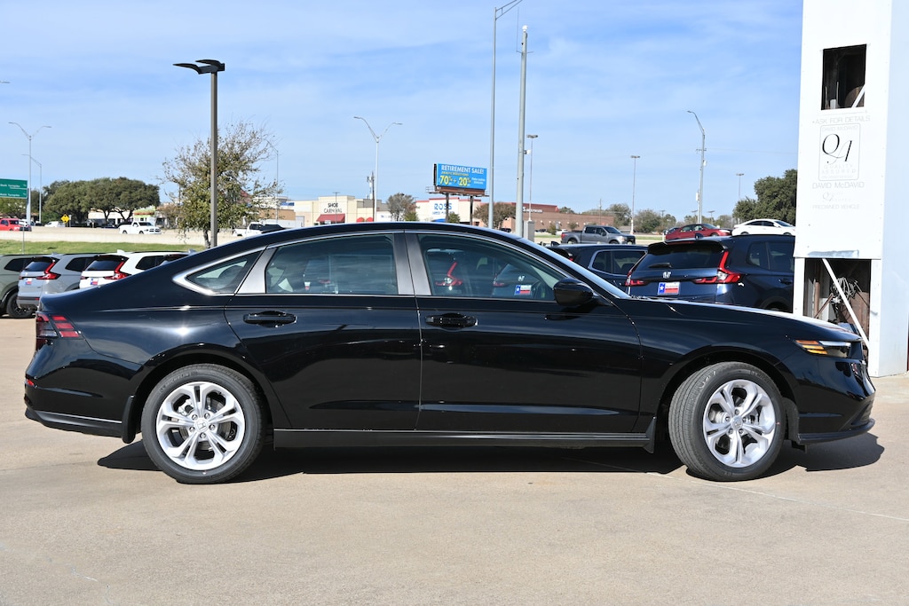 PRICED TO SELL QUICKLY! Research suggests it will not be available for long. This Crystal Black Pearl 2025 Honda Accord Sedan LX is priced to sell fast! David McDavid Honda of Irving prides itself on value pricing its vehicles and exceeding all customer expectations! The next step? Give us a call to confirm availability and schedule a hassle free test drive! We are located at: 3700 W Airport Fwy, Irving, TX 75062. "" Contact our Internet Department at our Toll Free Number for your No Hassle Price. David McDavid of Irving has been serving the Dallas Fort Worth Metroplex for over 70 years at one location. * All New Honda website pricing excludes TT&L and Dealer installed equipment.""