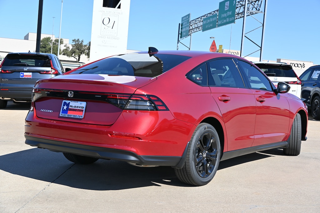 This Radiant Red Metallic 2025 Honda Accord Sedan SE is priced to sell fast! David McDavid Honda of Irving prides itself on value pricing its vehicles and exceeding all customer expectations! The next step? Give us a call to confirm availability and schedule a hassle free test drive! We are located at: 3700 W Airport Fwy, Irving, TX 75062. "" Contact our Internet Department at our Toll Free Number for your No Hassle Price. David McDavid of Irving has been serving the Dallas Fort Worth Metroplex for over 70 years at one location. * All New Honda website pricing excludes TT&L and Dealer installed equipment.""