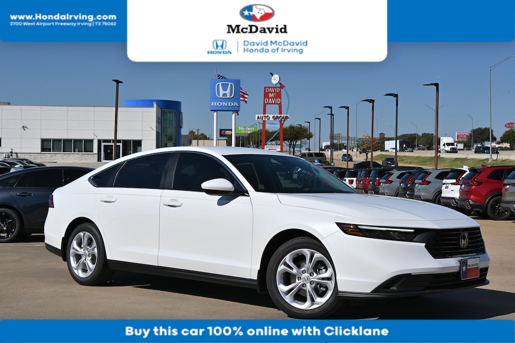 PRICED TO SELL QUICKLY! RESEARCH SUGGESTS IT WILL NOT BE AVAILABLE FOR LONG. -GREAT GAS MILEAGE- This Accord Sedan looks great with a clean Black interior and Platinum White Pearl exterior! Please call to confirm that this Accord Sedan is still available! Call us today to schedule a hassle-free test drive! We are located at: 3700 W Airport Fwy, Irving, TX 75062. "" Contact our Internet Department at our Toll Free Number for your No Hassle Price. David McDavid of Irving has been serving the Dallas Fort Worth Metroplex for over 70 years at one location. * All New Honda website pricing excludes TT&L and Dealer installed equipment.""