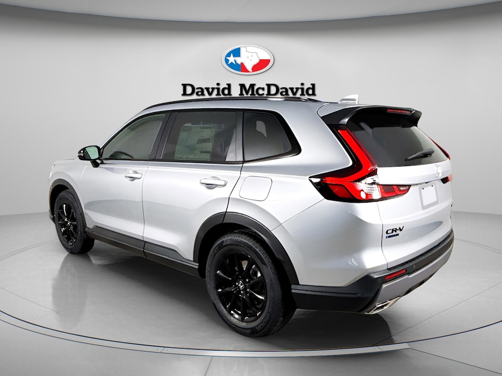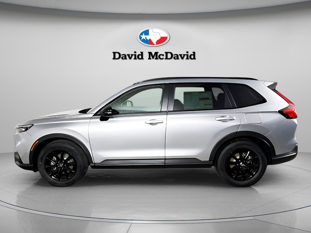 Recent Arrival! This 2026 Honda CR-V Hybrid Sport-L IN-TRANSIT in Solar Silver Metallic comes with the following features: 4-Wheel Disc Brakes, 8 Speakers, ABS brakes, Adaptive Cruise Control: Adaptive Cruise Control (ACC) with Low-Speed Follow, Air Conditioning, Alloy wheels, AM/FM radio, Apple CarPlay/Android Auto, Auto High-beam Headlights, Auto-dimming Rear-View mirror, Automatic temperature control, Blind Spot Information (BSI) System warning, Brake assist, Bumpers: body-color, Compass, Delay-off headlights, Driver door bin, Driver vanity mirror, Dual front impact airbags, Dual front side impact airbags, Electronic Stability Control, Exterior Parking Camera Rear, Four wheel independent suspension, Front anti-roll bar, Front Bucket Seats, Front Center Armrest, Front dual zone A/C, Front reading lights, Fully automatic headlights, Heated door mirrors, Heated Front Bucket Seats, Heated front seats, Illuminated entry, Knee airbag, Leather Seat Trim, Leather Shift Knob, Leather steering wheel, Low tire pressure warning, Memory seat, Occupant sensing airbag, Outside temperature display, Overhead airbag, Overhead console, Panic alarm, Passenger door bin, Passenger vanity mirror, Power door mirrors, Power driver seat, Power Liftgate, Power moonroof, Power passenger seat, Power steering, Power windows, Radio data system, Radio: 320-Watt AM/FM Audio System, Rear anti-roll bar, Rear reading lights, Rear seat center armrest, Rear side impact airbag, Rear window defroster, Rear window wiper, Remote keyless entry, Security system, Speed control, Speed-sensing steering, Speed-Sensitive Wipers, Split folding rear seat, Spoiler, Steering wheel mounted audio controls, Telescoping steering wheel, Tilt steering wheel, Traction control, Trip computer, Turn signal indicator mirrors, Variably intermittent wipers, and Wheels: 18 Berlina Black.