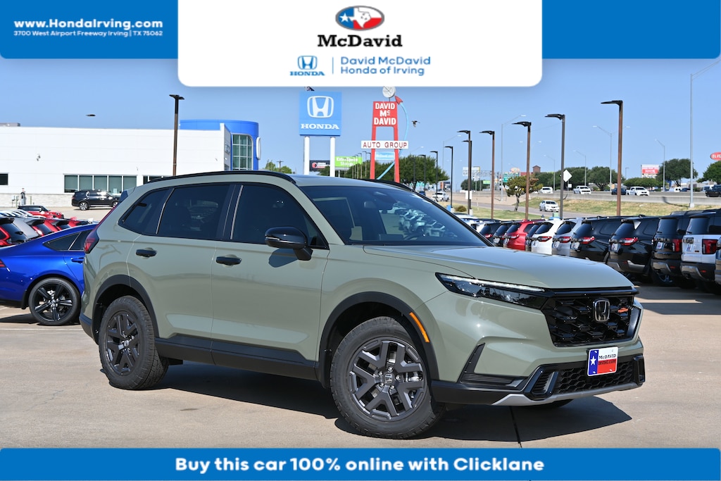 PRICED TO SELL QUICKLY! Research suggests it will not be available for long. This 2026 Honda CR-V Hybrid TrailSport has a great looking Ash Green Metallic exterior and a Black interior! This CR-V Hybrid has many valuable options: -Backup Camera- -Bluetooth- -AM/FM Radio- -Aux Audio Input- -Heated Front Seats- -All Wheel Drive- -Auto Climate Control- -High Intensity Headlights- -Automatic Headlights- -Rear Seat Pass-Through- -Multi-Zone Air Conditioning- -Remote Start- -Security System- -Power Locks- -Keyless Entry- -Keyless Start/Push Button Start- -Power Windows- -Power Mirrors- -Remote Engine Start- -Power Driver's Seat- -Steering Wheel Controls- -Cruise Control- -Leather Steering Wheel- -Rear Bench Seats- -Alloy Wheels- On top of all that, it has MANY safety features. -ABS Brakes- -Brake Assist- -Traction Control- -Stability Control- Our pricing is very competitive and our vehicles sell quickly. Please call us to confirm availability and to setup a time to drive this CR-V Hybrid! Contact us at (469) 405-3340. We are located at 3700 W Airport Fwy, Irving, TX 75062
