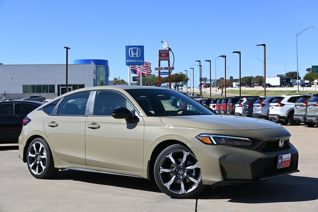 -Great Gas Mileage- This 2026 Honda Civic Hatchback Hybrid Sport Touring is Sand Dune Pearl with a Black interior. Buy with confidence knowing David McDavid Honda of Irving has been exceeding customer expectations for many years and will always provide customers with a great value! "" Contact our Internet Department at our Toll Free Number for your No Hassle Price. David McDavid of Irving has been serving the Dallas Fort Worth Metroplex for over 70 years at one location. * All New Honda website pricing excludes TT&L and Dealer installed equipment.""