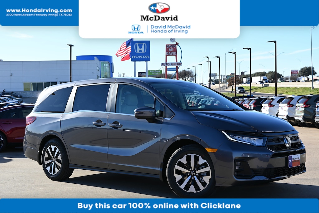 PRICED TO SELL QUICKLY! Research suggests it will not be available for long. This Modern Steel Metallic 2026 Honda Odyssey EX-L is priced to sell fast! David McDavid Honda of Irving prides itself on value pricing its vehicles and exceeding all customer expectations! The next step? Give us a call to confirm availability and schedule a hassle free test drive! We are located at: 3700 W Airport Fwy, Irving, TX 75062. "" Contact our Internet Department at our Toll Free Number for your No Hassle Price. David McDavid of Irving has been serving the Dallas Fort Worth Metroplex for over 70 years at one location. * All New Honda website pricing excludes TT&L and Dealer installed equipment.""
