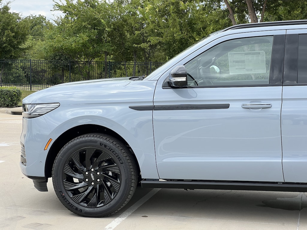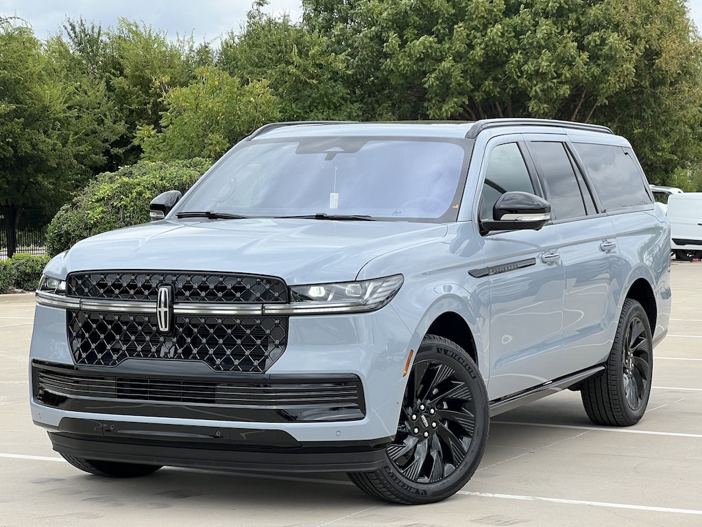 This 2025 Lincoln Navigator L Reserve in Gray Mist Metallic Tri-Coat comes with the following features: 3.5L V6 10-Speed Automatic 4WD Equipment Group 202A Reserve II, Heavy-Duty Trailer Tow Package (26mm Engine Radiator and Trailer Brake Controller), Jet Appearance Package (Black Accent Badge, Black Accent Interior Pack, Black Beltline Molding, Black Painted Roof Rails, Front Bumper Fascia, Lincoln Lit Star, Unique Lincoln Grille Pillar Black Surround, and Wheels: 22 High-Gloss Ebony Aluminum), 28 Speakers, 2nd Row Heated & Ventilated Dual Captain's Chair, 3rd row seats: split-bench, 4-Wheel Disc Brakes, ABS brakes, Adaptive suspension, Adjustable pedals, Air Conditioning, Alloy wheels, AM/FM radio: SiriusXM with 360L, Apple CarPlay/Android Auto, Audio memory, Auto High-beam Headlights, Auto Htd & Ventilated Premium Lthr Captain's Chair, Auto Start-Stop Technology, Auto tilt-away steering wheel, Auto-dimming door mirrors, Auto-dimming Rear-View mirror, Auto-leveling suspension, Automatic temperature control, Brake assist, Bumpers: body-color, Compass, Delay-off headlights, Driver door bin, Driver vanity mirror, Driver's Seat Mounted Armrest, Dual front impact airbags, Dual front side impact airbags, Electronic Stability Control, Emergency communication system: 911 Assist, Exterior Parking Camera Rear, Four wheel independent suspension, Front anti-roll bar, Front Bucket Seats, Front dual zone A/C, Front License Plate Bracket, Front reading lights, Fully automatic headlights, Garage door transmitter, Heated door mirrors, Heated front seats, Heated rear seats, Heated steering wheel, HVAC memory, Illuminated entry, Leather steering wheel, Lincoln Connect, Lincoln Premium Connectivity, Low tire pressure warning, Memory seat, Navigation system: Connected Navigation (1-year trial), Occupant sensing airbag, Outside temperature display, Overhead airbag, Overhead console, Panic alarm, Passenger door bin, Passenger seat mounted armrest, Passenger vanity mirror, Pedal memory, Power adjustable front head restraints, Power adjustable rear head restraints, Power door mirrors, Power driver seat, Power moonroof, Power passenger seat, Power steering, Power windows, Radio data system, Radio: Revel Ultima 3D AM/FM/HD Audio System, Rain sensing wipers, Rear air conditioning, Rear anti-roll bar, Rear audio controls, Rear reading lights, Rear window defroster, Rear window wiper, Reclining 3rd row seat, Remote keyless entry, Security system, SiriusXM w/360L, Speed control, Speed-sensing steering, Speed-Sensitive Wipers, Split folding rear seat, Spoiler, Steering wheel memory, Steering wheel mounted audio controls, Tachometer, Telescoping steering wheel, Tilt steering wheel, Traction control, Trip computer, Turn signal indicator mirrors, Variably intermittent wipers, Ventilated front seats, and Wheels: 22 Dark Tarnished Aluminum.