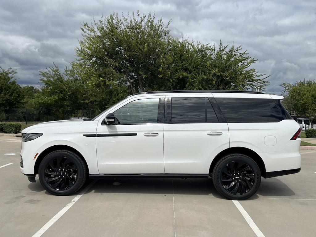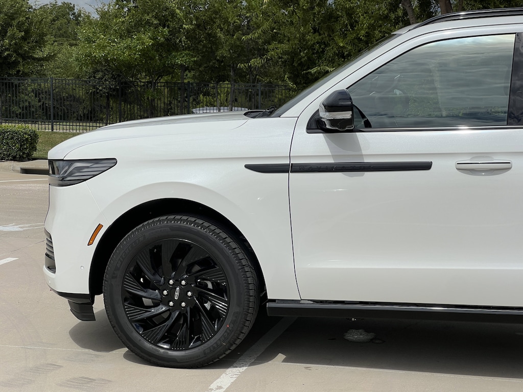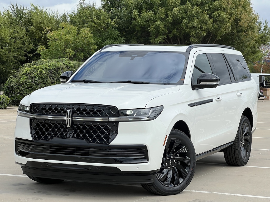 This 2025 Lincoln Navigator Reserve in Pristine White Metallic Tri-Coat comes with the following features: 3.5L V6 10-Speed Automatic 4WD 4WD and Black Onyx Leather Equipment Group 202A Reserve II, Heavy-Duty Trailer Tow Package (26mm Engine Radiator and Trailer Brake Controller), Jet Appearance Package (Black Accent Badge, Black Accent Interior Pack, Black Beltline Molding, Black Painted Roof Rails, Front Bumper Fascia, Lincoln Lit Star, Unique Lincoln Grille Pillar Black Surround, and Wheels: 22 High-Gloss Ebony Aluminum), 4WD, Black Onyx Leather, 28 Speakers, 3rd row seats: split-bench, 4-Wheel Disc Brakes, ABS brakes, Adaptive suspension, Adjustable pedals, Air Conditioning, Alloy wheels, AM/FM radio: SiriusXM with 360L, Apple CarPlay/Android Auto, Audio memory, Auto High-beam Headlights, Auto Htd & Ventilated Premium Lthr Captain's Chair, Auto Start-Stop Technology, Auto tilt-away steering wheel, Auto-dimming door mirrors, Auto-dimming Rear-View mirror, Auto-leveling suspension, Automatic temperature control, Brake assist, Bumpers: body-color, Compass, Delay-off headlights, Driver door bin, Driver vanity mirror, Driver's Seat Mounted Armrest, Dual front impact airbags, Dual front side impact airbags, Electronic Stability Control, Emergency communication system: 911 Assist, Exterior Parking Camera Rear, Four wheel independent suspension, Front anti-roll bar, Front Bucket Seats, Front dual zone A/C, Front License Plate Bracket, Front reading lights, Fully automatic headlights, Garage door transmitter, Heated door mirrors, Heated front seats, Heated rear seats, Heated steering wheel, HVAC memory, Illuminated entry, Leather steering wheel, Lincoln Connect, Lincoln Premium Connectivity, Low tire pressure warning, Memory seat, Navigation system: Connected Navigation (1-year trial), Occupant sensing airbag, Outside temperature display, Overhead airbag, Overhead console, Panic alarm, Passenger door bin, Passenger seat mounted armrest, Passenger vanity mirror, Pedal memory, Power adjustable rear head restraints, Power door mirrors, Power driver seat, Power moonroof: Panoramic Vista Roof, Power passenger seat, Power steering, Power windows, Radio data system, Radio: Revel Ultima 3D AM/FM/HD Audio System, Rain sensing wipers, Rear air conditioning, Rear anti-roll bar, Rear audio controls, Rear reading lights, Rear window defroster, Rear window wiper, Reclining 3rd row seat, Remote keyless entry, Security system, SiriusXM w/360L, Speed control, Speed-sensing steering, Speed-Sensitive Wipers, Split folding rear seat, Spoiler, Steering wheel memory, Steering wheel mounted audio controls, Tachometer, Telescoping steering wheel, Tilt steering wheel, Traction control, Trip computer, Turn signal indicator mirrors, Variably intermittent wipers, Ventilated front seats, and Wheels: 22 Dark Tarnished Aluminum.