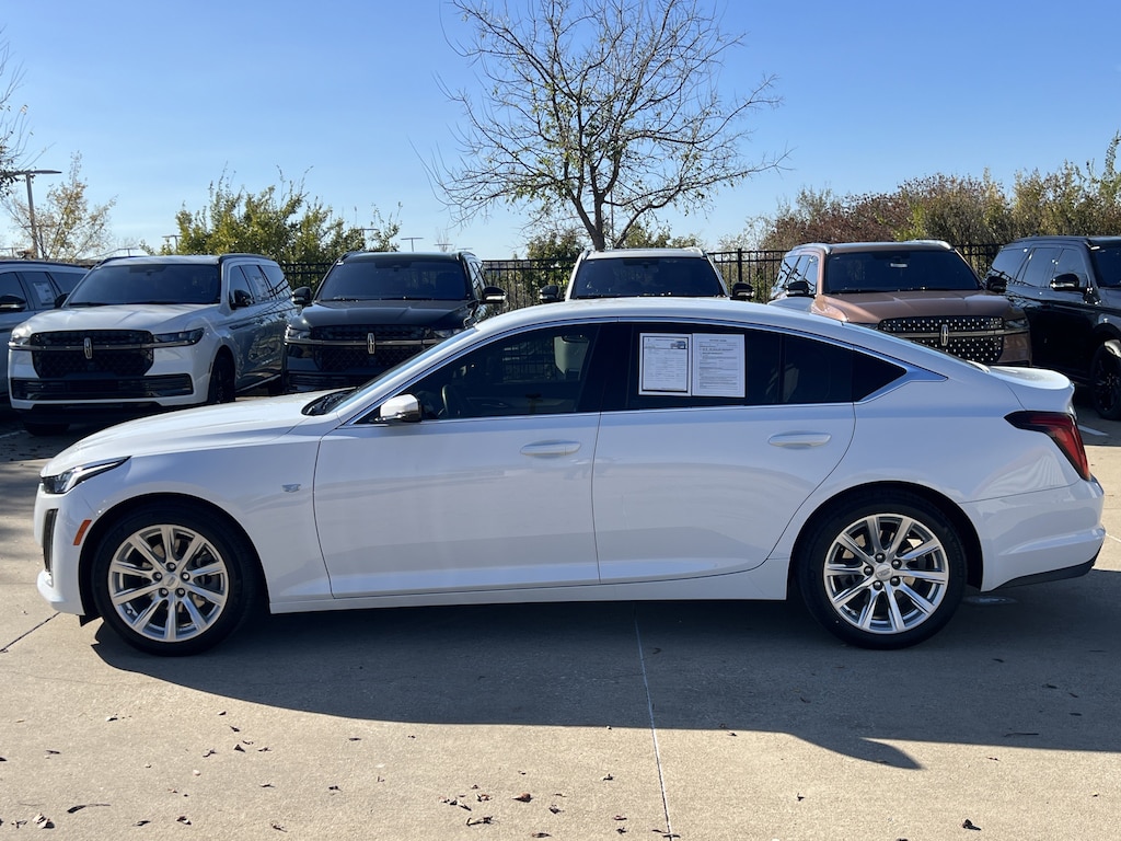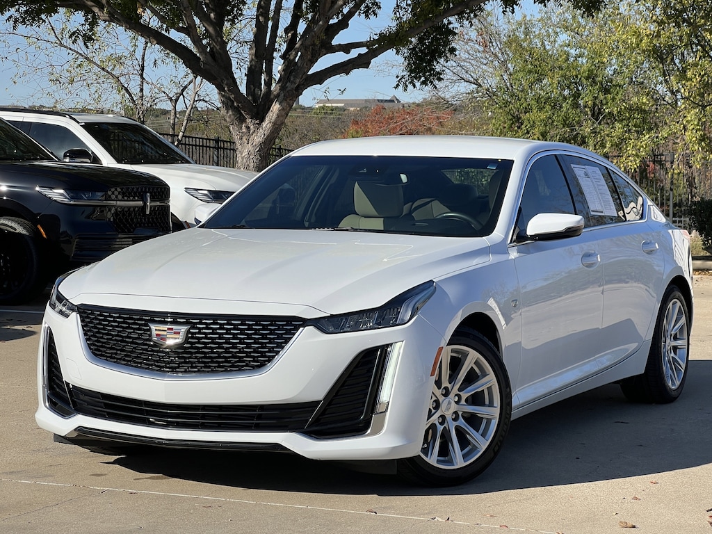 Clean CARFAX. Summit White 2023 Cadillac CT5 Luxury RWD 10-Speed Automatic 2.0L I4 Turbocharged DOHC 16V LEV3-SULEV30 237hp CT5 Luxury, 4D Sedan, 2.0L I4 Turbocharged DOHC 16V LEV3-SULEV30 237hp, 10-Speed Automatic, RWD, Summit White, Sahara Beige With Jet Black Accents Leather, 3 USB Ports, 4-Wheel Disc Brakes, 9 Speakers, ABS brakes, Air Conditioning, Alloy wheels, AM/FM radio: SiriusXM with 360L, Apple CarPlay/Android Auto, Automatic Stop/Start w/Disable, Automatic temperature control, Brake assist, Bumpers: body-color, Compass, Delay-off headlights, Driver 2-Way Power Lumbar Seat Adjuster, Driver door bin, Driver vanity mirror, Dual front impact airbags, Dual front side impact airbags, Electronic Stability Control, Emergency communication system: OnStar and Cadillac connected services capable, Exterior Parking Camera Rear, Four wheel independent suspension, Front anti-roll bar, Front Bucket Seats, Front Center Armrest, Front dual zone A/C, Front License Plate Bracket, Front Passenger 2-Way Power Lumbar Seat Adjuster, Front reading lights, Fully automatic headlights, Garage door transmitter, HD Radio, Heated door mirrors, Illuminated entry, Inteluxe Seating Surfaces, Knee airbag, Leather steering wheel, Low tire pressure warning, Occupant sensing airbag, Outside temperature display, Overhead airbag, Overhead console, Panic alarm, Passenger door bin, Passenger vanity mirror, Power door mirrors, Power driver seat, Power passenger seat, Power steering, Power windows, Preferred Equipment Group 1SB, Premium 9-Speaker Audio System Feature, Radio data system, Radio: Cadillac User Experience, Rain sensing wipers, Rear anti-roll bar, Rear reading lights, Rear seat center armrest, Rear window defroster, Remote keyless entry, SiriusXM w/360L, Speed control, Speed-sensing steering, Split folding rear seat, Steering wheel mounted audio controls, Tachometer, Teen Driver, Telescoping steering wheel, Tilt steering wheel, Traction control, Trip computer, Turn signal indicator mirrors, Variably intermittent wipers, Voltmeter, Wheels: 18 Alloy w/Bright Silver Finish.Odometer is 4836 miles below market average! 23/33 City/Highway MPG