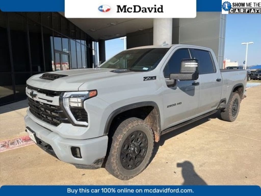 CARFAX One-Owner. Slate Gray Metallic 2024 Chevrolet Silverado 2500HD LTZ 4WD 10-Speed Automatic Duramax 6.6L V8 Turbodiesel 10-Speed Automatic, 4WD, Jet Black Leather, 120-Volt Bed Mounted Power Outlet, 120-Volt Interior Power Outlet, 15 Diagonal Multicolor Head-Up Display, 170 Amp Alternator, 2 Charge/Data USB Ports Inside Center Console, 4 Round Black Assist Steps (LPO), 6-Speaker Audio System, Adaptive Cruise Control, Auto-Dimming Inside Rear-View Mirror, Bed View Camera w/2 Trailer Camera Provisions, Black Beltline Moldings, Black Chevytec Spray-On Bedliner, Bluetooth® For Phone, Body-Color Front Bumper, Body-Color Rear Bumper, BOSE Premium 7-Speaker Sound System, Chevrolet Connected Access Capable, Chrome Door Handles, Chrome Mirror Caps, Color-Keyed Carpeting Floor Covering, Compass, Deep-Tinted Glass, Electric Rear-Window Defogger, Electronic Cruise Control w/Set & Resume Speed, EZ Lift Power Lock & Release Tailgate, Floor-Mounted Center Console, Front Bucket Seats, Front LED Fog Lamps, Front Rain-Sensing Wipers, Front Rubberized Vinyl Floor Mats, HD Rear Vision Camera, HD Surround Vision, Heated 2nd Row Outboard Seats, Heated Steering Wheel, High Gloss Black Door Handles, High Gloss Black Mirror Caps, Hill Descent Control, Hitch Guidance w/Hitch View, In-Vehicle Trailering App System, Keyless Open & Start, LED Cargo Area Lighting, LTZ Convenience Package, LTZ Convenience Package II, LTZ Plus Package, Manual Tilt & Telescoping Steering Column, Off-Road Suspension, OnStar & Chevrolet Connected Services Capable, Power Door Locks, Power Front Windows w/Driver Express Up/Down, Power Front Windows w/Passenger Express Up/Down, Power Rear Windows w/Express Down, Power Sliding Rear Window w/Defogger, Preferred Equipment Group 1LZ, Push Button Start, Rear Camera Mirror, Rear Cross Traffic Alert, Rear Rubberized Vinyl Floor Mats, Rear Wheelhouse Liners, Remote Vehicle Starter System, Safety Alert Seat, Safety Package, SiriusXM w/360L, Standard Tailgate, Steering Wheel Audio Controls, Suspension Package, Technology Package, Trailer Camera Provisions, Trailer Side Blind Zone Alert, Ultrasonic Front & Rear Park Assist, Unauthorized Entry Theft-Deterrent System, Universal Home Remote, Up-Level Rear Seat w/Storage Package, Ventilated Driver & Front Passenger Seats, Wheels: 18 High Gloss Black Aluminum, Wi-Fi Hotspot Capable, Wireless Charging, Wireless Phone Projection, Wrapped Steering Wheel, Z71 Off-Road Package, Z71 Sport Edition.Recent Arrival!