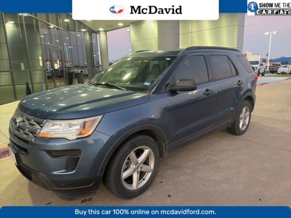 CARFAX One-Owner. Blue Metallic 2018 Ford Explorer FWD 6-Speed Automatic with Select-Shift 3.5L 6-Cylinder SMPI DOHC BLUETOOTH, REAR BACK UP CAMERA, 6 Speakers, Air Conditioning, Alloy wheels, Compass, Emergency communication system: 911 Assist, Equipment Group 100A, Fully automatic headlights, Heated door mirrors, Knee airbag, Outside temperature display, Power door mirrors, Power driver seat, Power steering, Power windows, Rear air conditioning, Remote keyless entry, Speed-sensing steering, Steering wheel mounted audio controls, SYNC Communication & Entertainment System, Telescoping steering wheel, Tilt steering wheel.Recent Arrival!