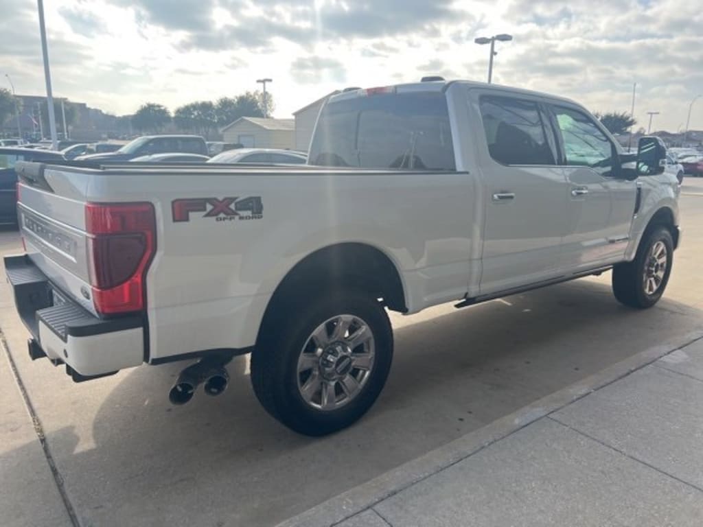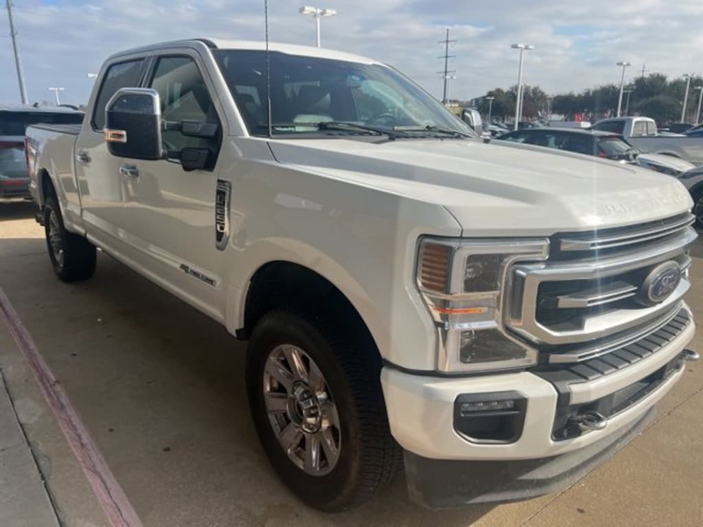 CARFAX One-Owner. Star White Metallic Tri-Coat 2022 Ford F-250SD Platinum 4WD 10-Speed Automatic Power Stroke 6.7L V8 DI 32V OHV Turbodiesel BLUETOOTH, REAR BACK UP CAMERA, 4WD, 10 Speakers, Adjustable pedals, Advanced Security Pack Inclination Sensor Removal, Alloy wheels, Auto-dimming Rear-View mirror, Compass, Emergency communication system: SYNC 4 911 Assist, Front dual zone A/C, Front fog lights, Fully automatic headlights, FX4 Off-Road Package, GVWR: 10,000 lb Payload Package, Heated door mirrors, High Capacity Trailer Tow Package, Hill Descent Control, Lane Departure Warning System, Leather steering wheel, Low tire pressure warning, Navigation system: Connected Navigation, Off-Road Specifically Tuned Shock Absorbers, Outside temperature display, Power door mirrors, Power driver seat, Power steering, Power windows, Pro Trailer Backup Assist - High Capacity, Radio: B&O Sound System by Bang & Olufsen, Rear Parking Sensors, Remote keyless entry, SiriusXM Radio w/360L, Steering wheel mounted audio controls, SYNC 4 w/Enhanced Voice Recognition, Telescoping steering wheel, Tilt steering wheel, Twin Panel Power Moonroof, Ultimate Trailer Tow Camera System, Unique FX4 Off-Road Box Decal.Recent Arrival!