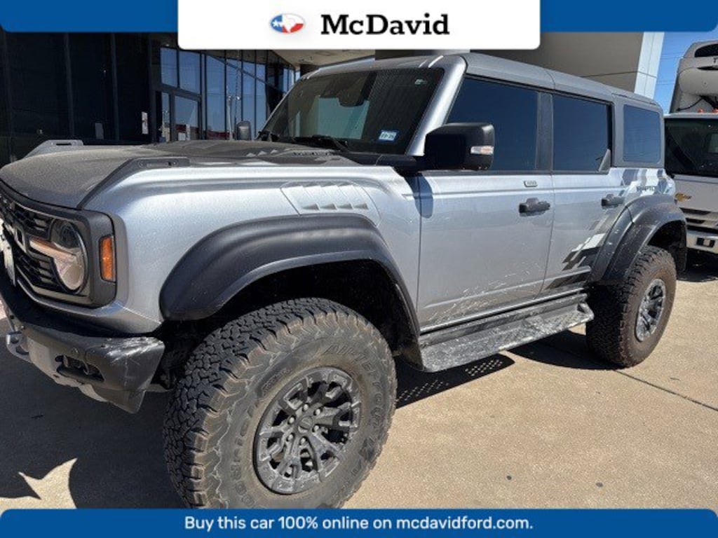 Clean CARFAX. Iconic Silver Metallic 2023 Ford Bronco Raptor 4WD 10-Speed Automatic 3.0L EcoBoost V6 BLUETOOTH, REAR BACK UP CAMERA, APPLE CAR PLAY, 10 Speakers w/Subwoofer, 2 Smart Charging USB Ports In Dashboard, Adaptive Cruise Control, Alloy wheels, AM/FM radio: SiriusXM with 360L, Connected Built-In Navigation, Emergency communication system: 911 Assist, Equipment Group 374A Lux Package, Evasive Steering Assist, Exterior Parking Camera Rear, Front dual zone A/C, Front fog lights, Fully automatic headlights, Heated front seats, Heated Steering Wheel, Leather Shift Knob, Low tire pressure warning, Lux Package, Navigation system: Connected Navigation, Outside temperature display, Power steering, Power windows, Radio: B&O Sound System by Bang & Olufsen, Remote keyless entry, Steering wheel mounted audio controls, Telescoping steering wheel, Tilt steering wheel, Universal Garage Door Opener, Wireless Charging Pad.Recent Arrival!