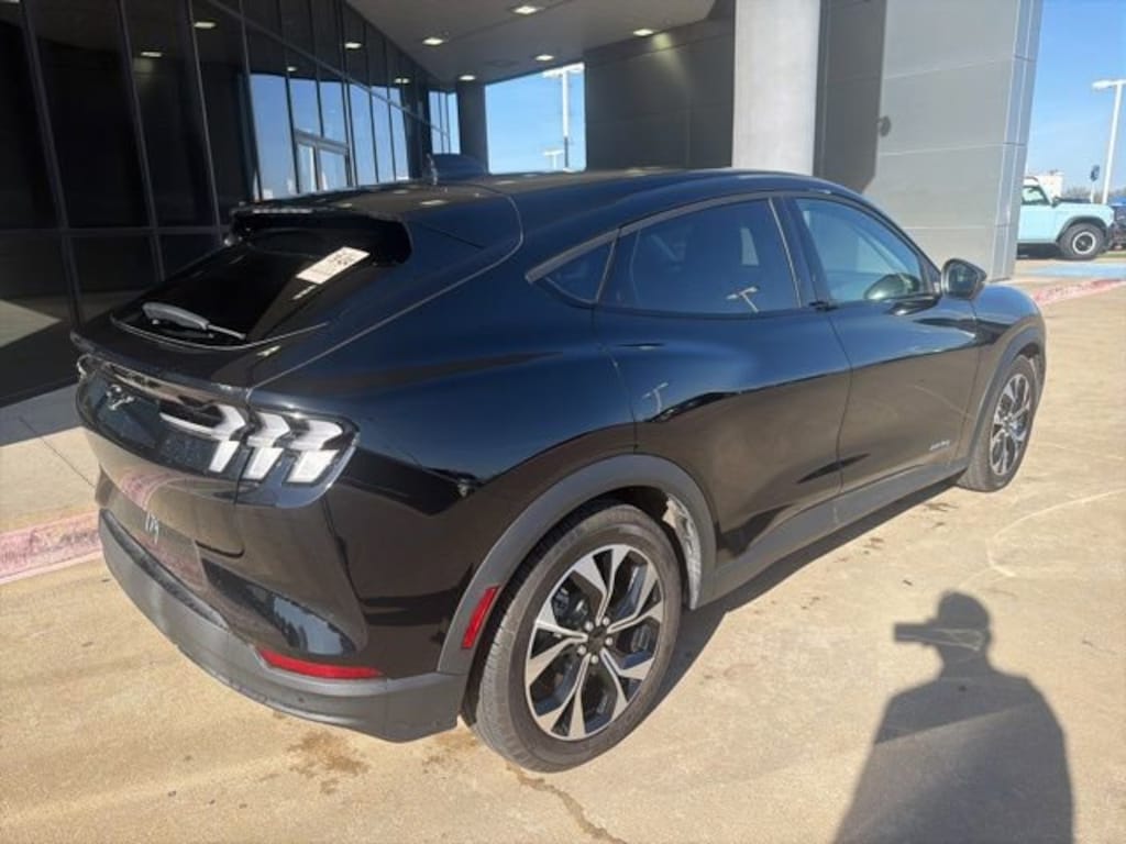 Alloy wheels, a rear spoiler, and heated, power-adjustable side mirrors further enhance the Mustang Mach-E's striking appearance, while the four-wheel independent suspension and speed-sensing steering provide a dynamic and engaging driving experience.